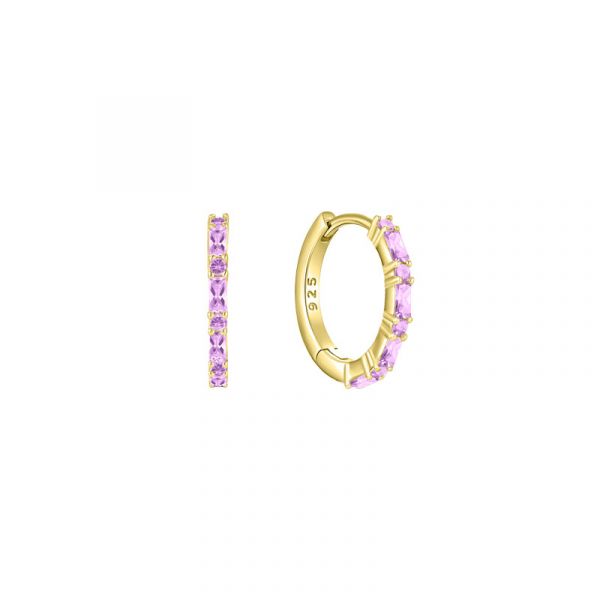 Deze goudkleurige oorringen van 16 mm combineren zachte lichtroze baguette-geslepen zirkonia’s met een warme goudtint voor een betoverend resultaat. Ideaal voor een vrouwelijke en elegante look.