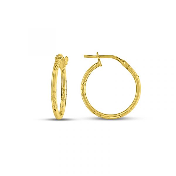 Laat je verrassen door de verfijnde Graffiato oorringen in een warme goudkleur. De subtiele krasstructuur in combinatie met de ronde vorm zorgt voor een luxueuze en stijlvolle uitstraling, ideaal voor elke gelegenheid.
