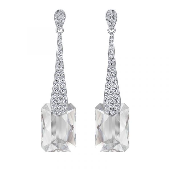 Combineer deze Crystal kleurige Rettangolo Sphérique oorhangers met de creoli oorbellen om je look helemaal compleet te maken. Deze 16mm rechthoekige oorhangers zijn gemaakt van 925 Sterling zilver en zijn voorzien van een rhodium plating en Crystal kleurige Brillante kristal. Zie ook de bijpassende hanger in gerelateerde producten.