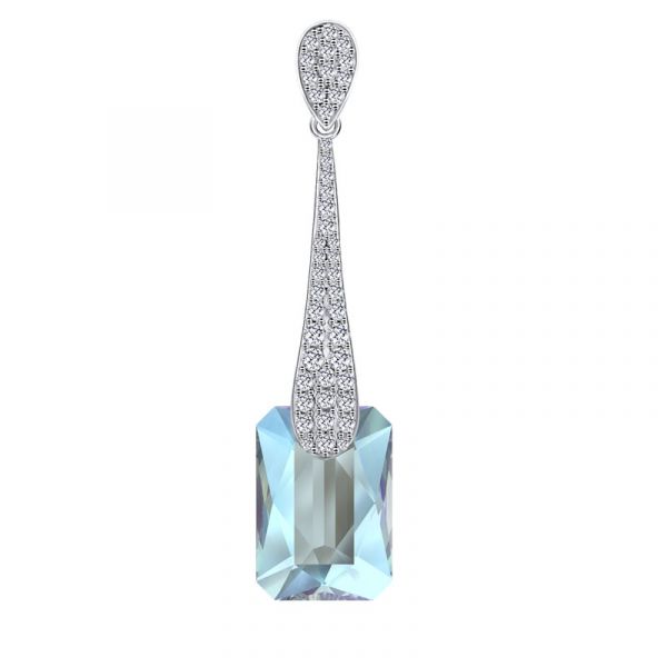 Combineer deze Aquamarine Shimmer kleurige Rettangolo Sphérique Sperique hanger met de bijbehorende oorhangers voor aan de creoli oorbellen, om je look helemaal compleet te maken. Deze 16mm rechthoekige hanger is niet wisselbaar en is gemaakt van 925 Sterling zilver en voorzien van een rhodium plating met Aquamarine Shimmer kleurige Brillante kristal.