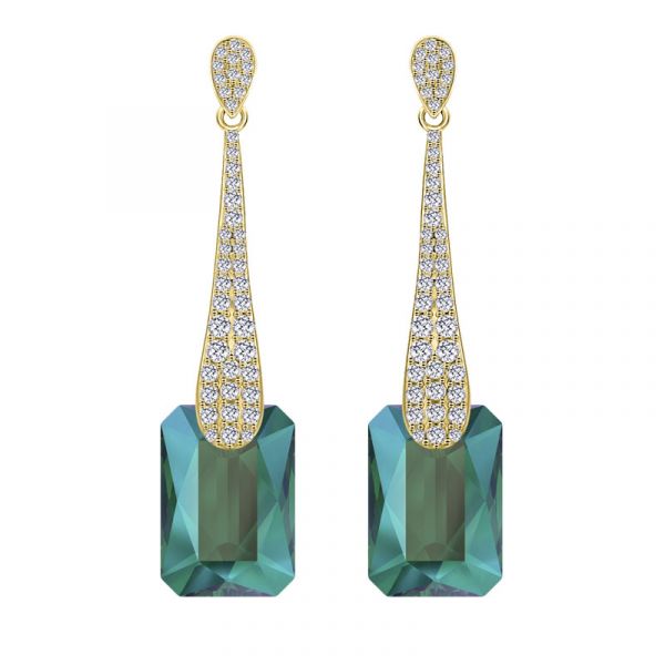 Combineer deze Emerald Shimmer kleurige Rettangolo Sphérique oorhangers met de creoli oorbellen om je look helemaal compleet te maken. Deze 16mm rechthoekige oorhangers zijn gemaakt van 925 Sterling zilver en zijn voorzien van een gold plating en Emerald Shimmer kleurige Brillante kristal. Zie ook de bijpassende hanger in gerelateerde producten.
