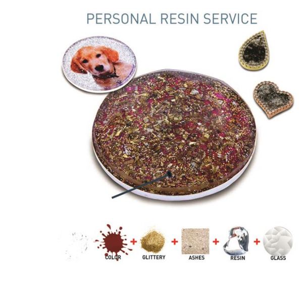 -Indien u as wilt verwerken in uw harscreatie stuurt u ons een theelepeltje fijne as op, eventueel samen een uitgeknipte foto.