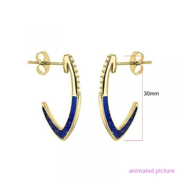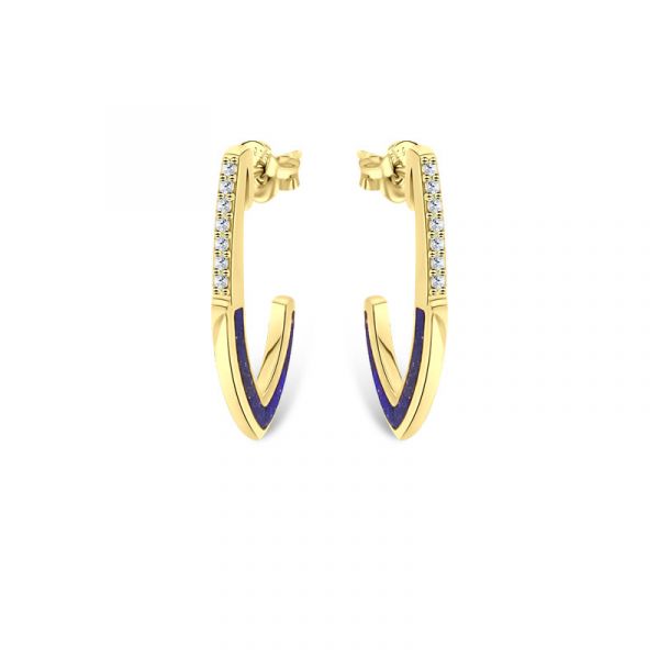 De Eterno "Geltrude Lapis" oorhangers zijn heel apart met Lapis en zirkonia (niet wisselbaar). Zeer mooi gevormde vergulde oorhangers met een strak design. Lapis is een ondoorzichtige steen met een intens azuurblauwe kleur. De oorhangers zijn van 925 zilver en voorzien van 0,5 micron vergulding en gaan in het oor met stekers met poussettes. De oorhangers zijn onderdeel van een set van ring en hanger.