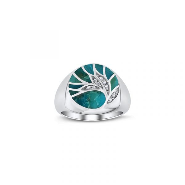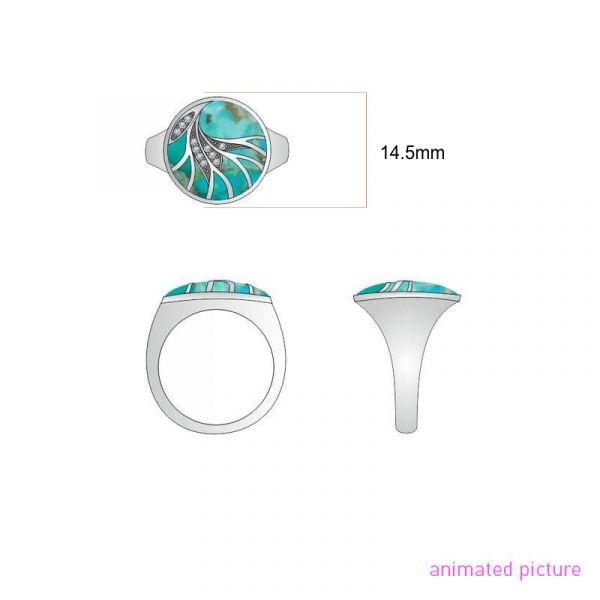 De Eterno "Eloisa Turquoise" ring is een prachtige design ring met Turkoois en zirkonia (niet wisselbaar). Met zijn ronde bovenzijde als een soort zegelring is deze ring zeer mooi aan uw vinger. Turkoois is hemelsblauw, groenblauw of groen van kleur en is rustgevend en kalmerend, doet denken aan de kleur van de zee en paradijselijke eilanden. De ring is van 925 zilver en voorzien van een rhodiumlaag om de kleur van het zilver te behouden. De ring is onderdeel van een set van oorhangers en hanger.